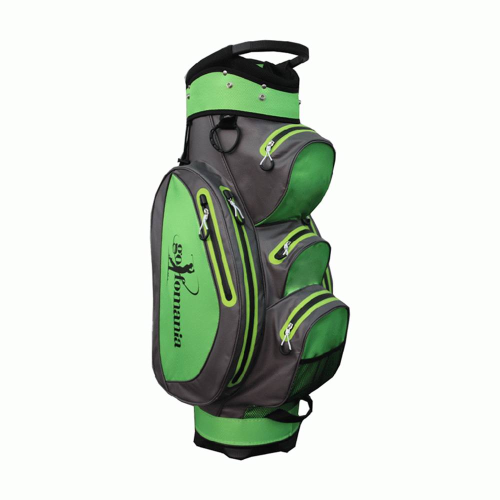 Eine Tasche ist speziell für Bälle vorgesehen, während eine weitere als Innentasche für Wertsachen dient. Praktische Extras wie ein Regenschirm und Tuchringhalter sowie eine Batterietasche auf der Rückseite runden die Ausstattung ab.