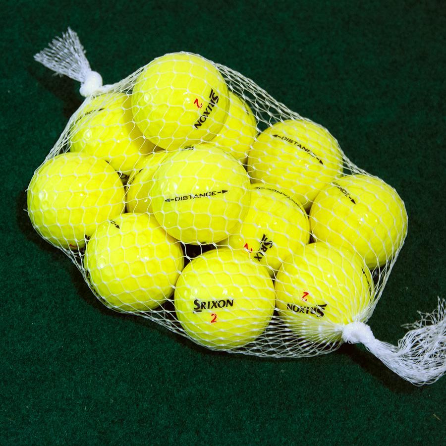 Ein Dutzend Golfbälle “Srixon Distance” im Netz, verschiedene Farben zur Auswahl