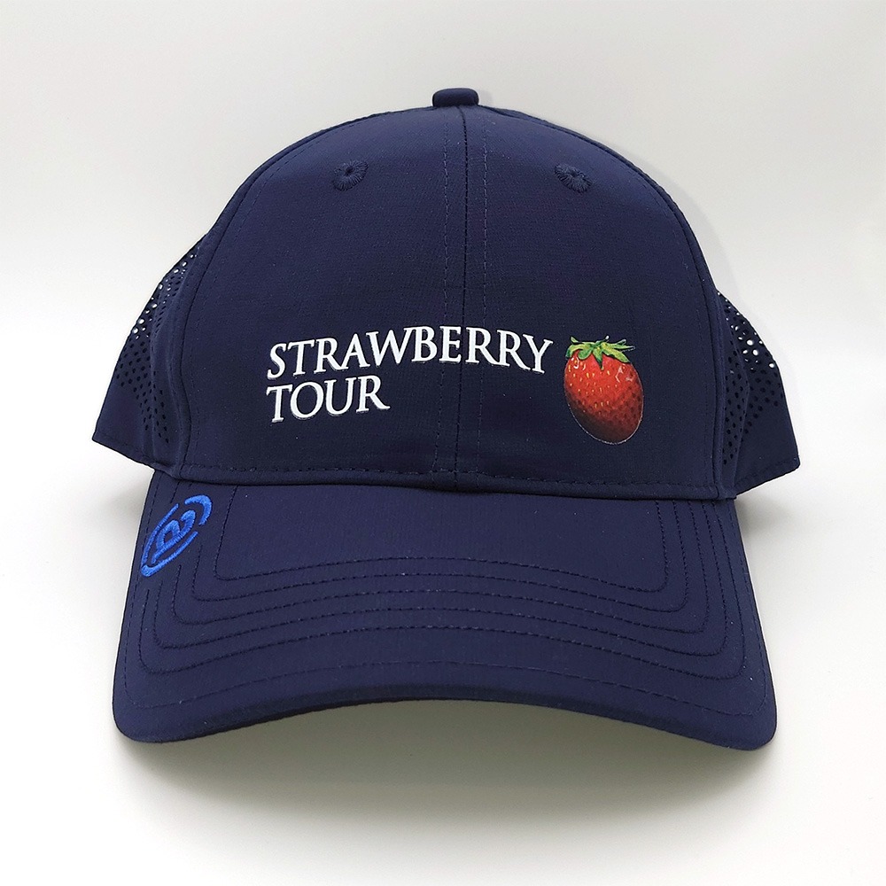 Eine klassische Kappe mit gebogenem Schirm aus 100 % Polyester. Der Klettverschluss hinten erlaubt eine einfache und stufenlose Größenanpassung. Die seitlichen Lüftungsgitter (Mesh) helfen bei der Luftzufuhr für mehr Tragekomfort und weniger Schweiß. Mit Strawberry Tour Logo vorne.